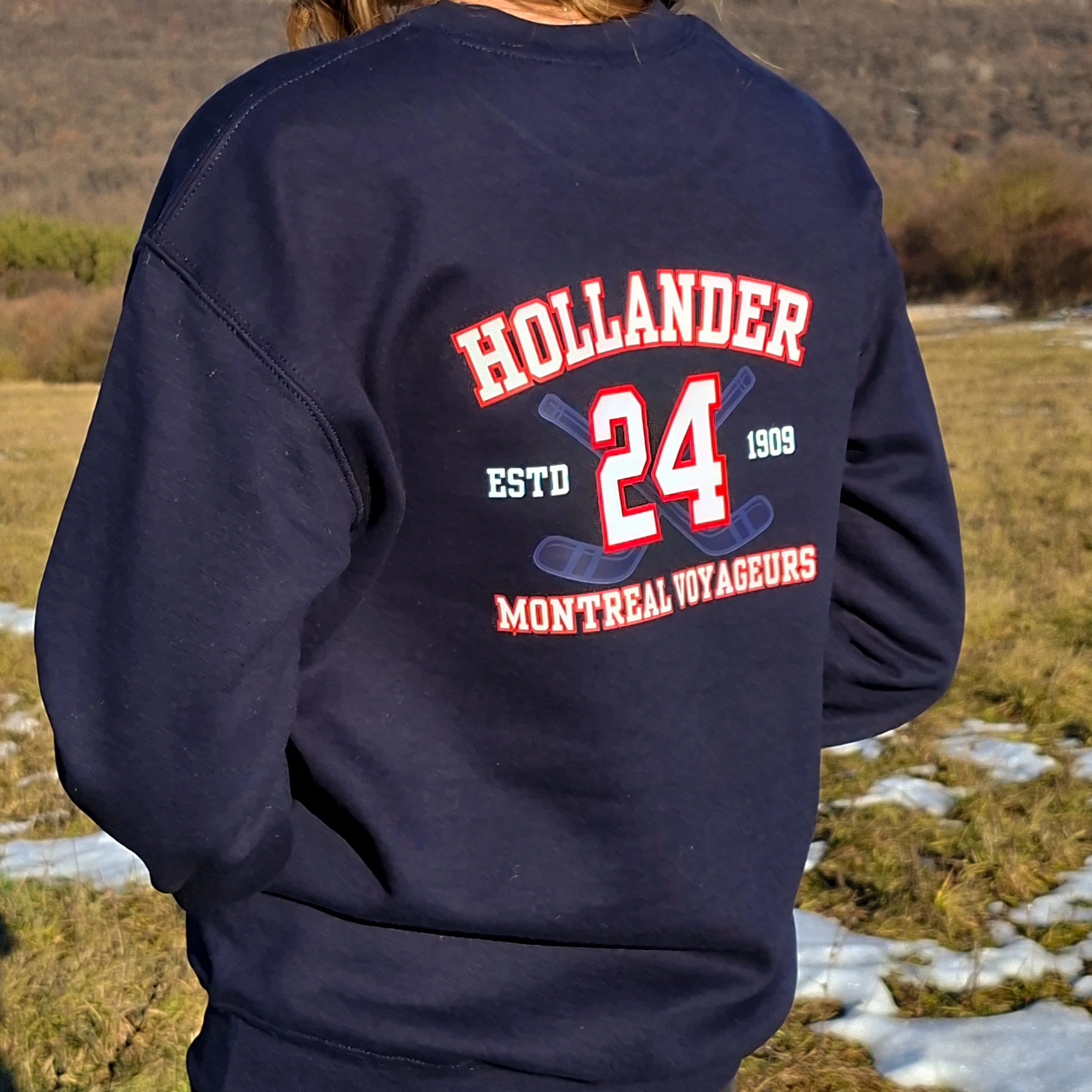 Ezt a mezstílusú pulóvert a hokirománc egyik szerethető főszereplője, Shane Hollander és csapata, a Montreal Voyageurs ihlette.